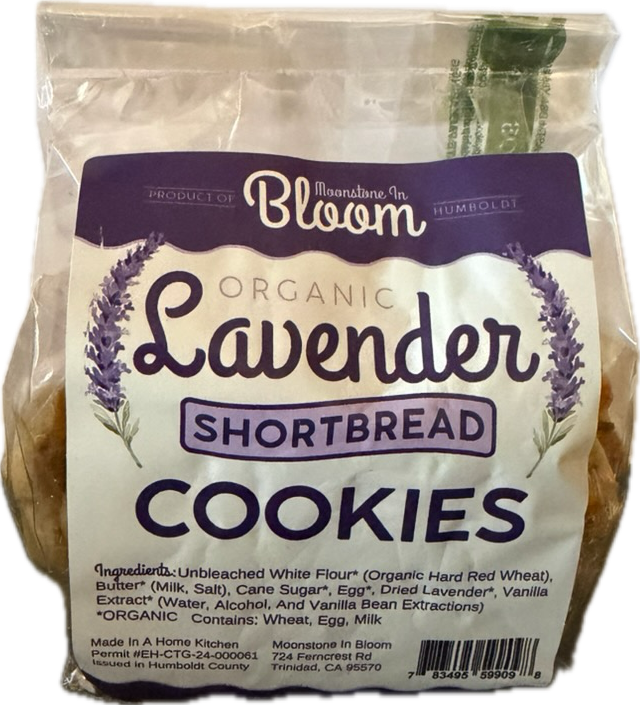 Unbleached white flour, butter, sugar, egg, lavender, vanilla — all organic, contains: wheat, egg, milk.